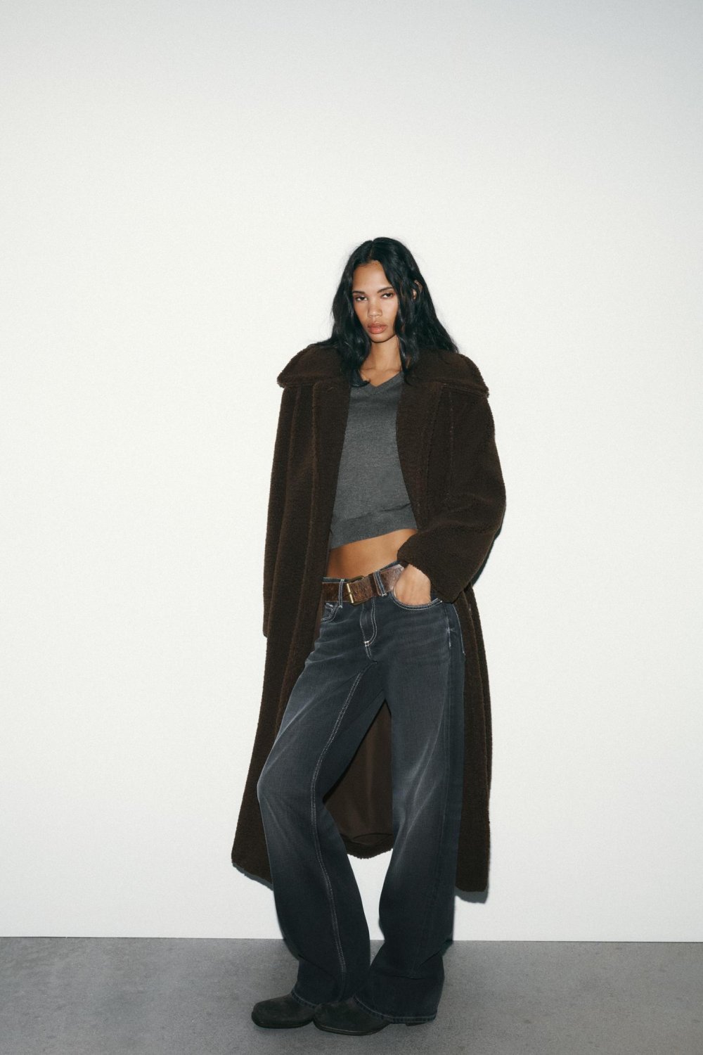 Zarin tamnosmeđi kaput od umjetnog janjećeg krzna primjer je statement zimskog komada koji u sekundi podiže cijeli outfit i izgleda skuplje nego što jest