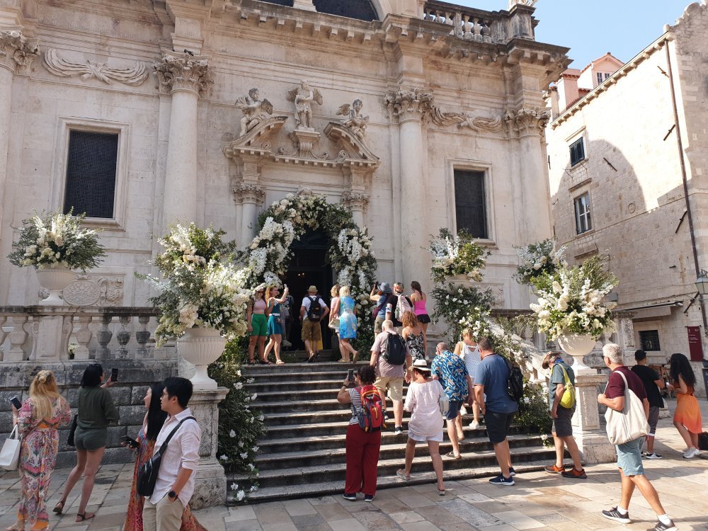 Zadivljujuće! Veličanstveno! Prekrasno! Upravo su se takvi uzvici čuli proteklog vikenda ispred dubrovačke crkve sv. Vlaha. Pažnju prolaznika privlačili su raskošno uređene stepenice i pročelje crkve za potrebe jednog bajkovitog vjenčanja. Cvjetni aranžmani su bili sve samo ne svakidašnji, a mnoge, koji su se složili da su to jedni od najupečatljivijih koje su do sada vidjeli, zanimalo je tko stoji iza te cvjetne umjetnosti
