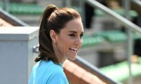 Kate Middleton je izgledala sofisticirano u Burberry odijelu smaragdnozelenoj boje koji joj je pristajao kao saliven sa zlatnim gumbima u sredini i na manžetama. Blejzer je stavila preko bijele košulje.
