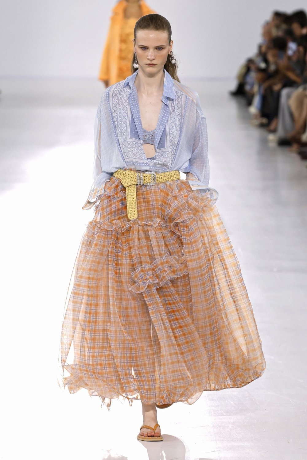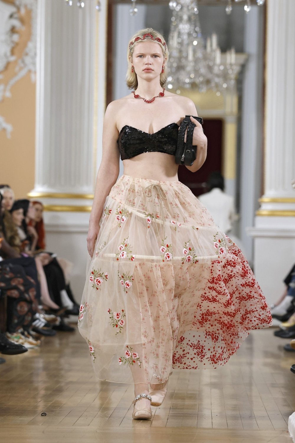 Modne piste gotovo su jednoglasno proglasile suknju princeza kroja nezaobilaznom. Chanel i Givenchy donose verzije s perjem i spužvastim efektom u jarkim bojama, Giambattista Valli bira engleski vez i ružičaste tonove dok Nina Ricci, Simone Rocha i Zimmermann ostaju vjerni cvjetnim motivima. Balenciaga pak reinterpretira balon siluetu u intenzivnoj zelenoj nijansi koju je nemoguće ignorirati.