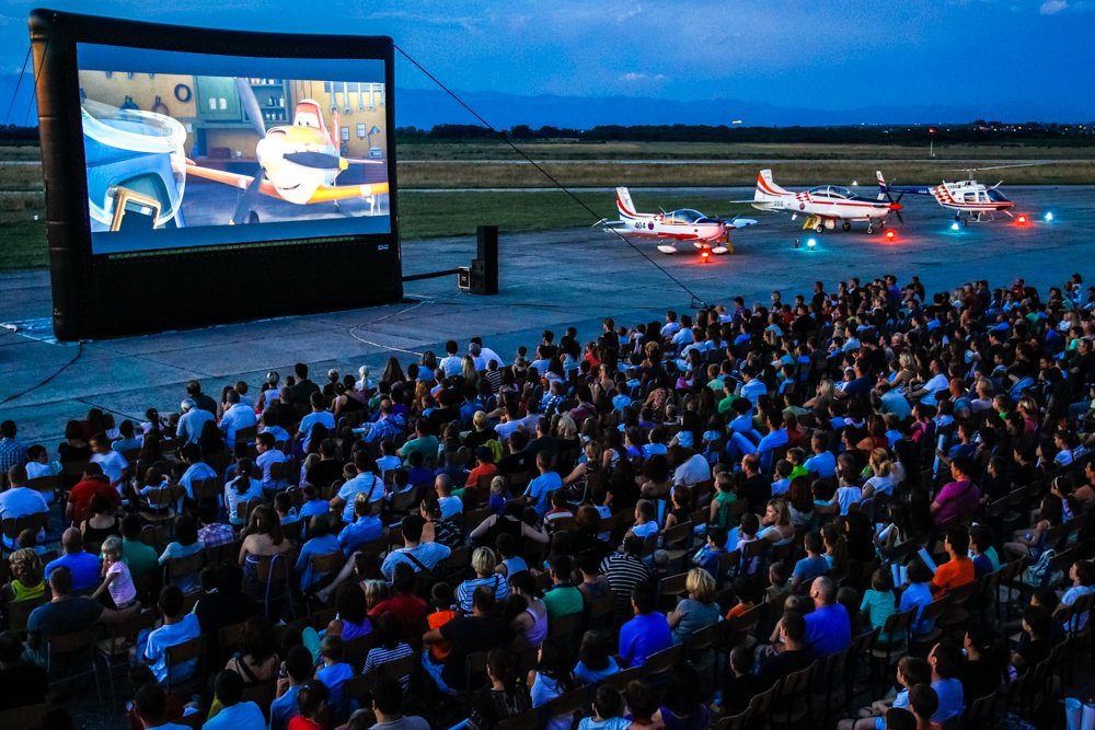 Jedinstvenom filmskom događaju na otvorenom, kinu pod zvijezdama, prethodio je avio program kroz koji se publika mogla upoznati sa akrobacijama i pilotskim vještinama te razgledati vojne avione i helikoptere kojima se gase požari i kojima lete hrvatski vojni piloti. Najmlađi su s uzbuđenjem dočekali premijerno prikazivanje filma nastalog u produkciji Walt Disney studija koji donosi priču o junaku Prašku Brziću, airtraktoru koji se pridružuje neustrašivom timu boraca protiv požara.