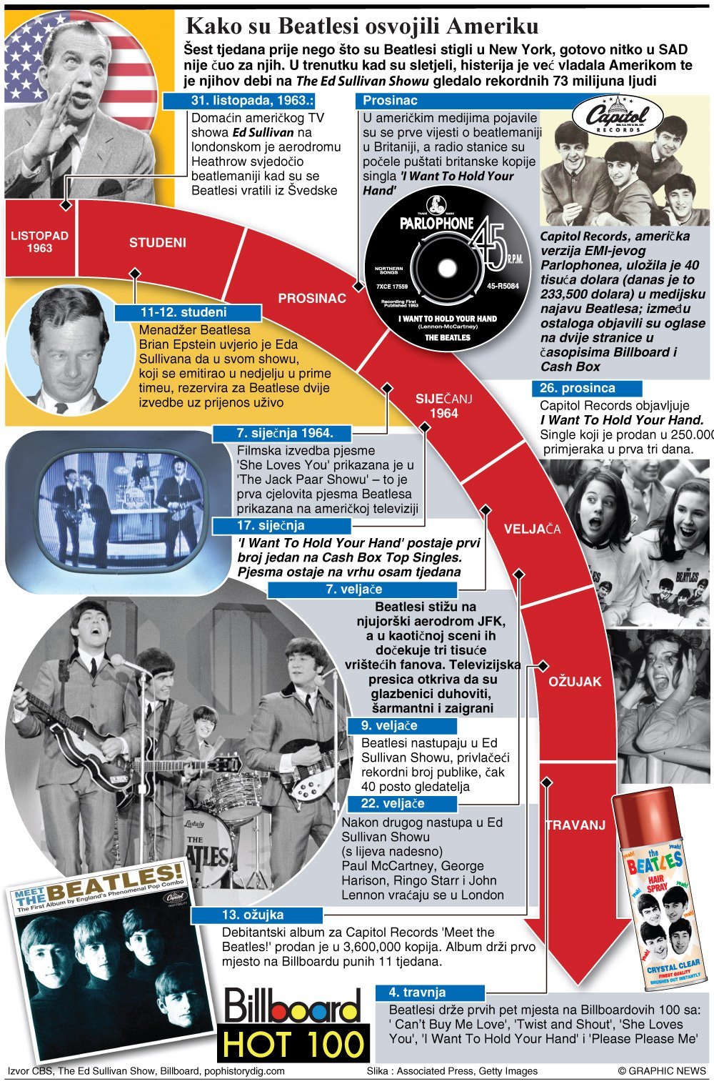 U nevjerojatno kratkom roku Beatlesi su prije točno 50 godina od čistih anonimaca postali megahit u SAD-u. Na koji način, saznajte u infografici