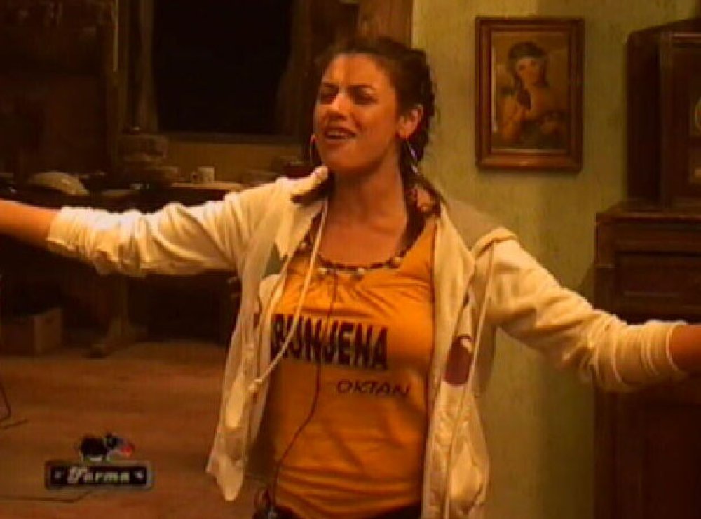 Nimalo zbunjena, iako je nosila majicu s tim natpisom, popela se na stol i zavijala iz sveg glasa. U ključnom trenutku iliti vrhuncu večeri zasvirala je i Seve Nacionale čiji je hit 'Gas, gas' učinio svoje. Najprije divljačenje po stolu, pjevanje, skidanje, a zatim dobro poznatu opijenost vinom i glazbom. Vesela atmosfera nije zaobišla ni gazdaricu Sonju koja alkohol ne pije, ali se povedena željom da za njezine vladavine na farmi svi uživaju i sama otkačila.