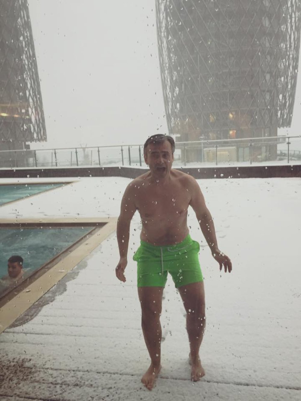 Osim skijanja i sanjkanja, Meštar je većinu svog zimskog odmora provodio u sauni i bazenu, a nakon što bi izašao iz vruće saune, hrabri je voditelj bio toliko odvažan da je nekoliko minuta provodio na snijegu te je tako nastalo i nekoliko prigodnih fotografija. 'Sin je odlučio uzeti stvar u svoje ruke pa me slikao u kupaćim hlačama. Umirali smo od smijeha. Kako sam netom izašao iz saune, nije mi uopće bilo toliko hladno', rekao nam je Meštar.
