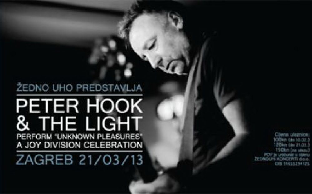 Organizatori programa Žednog uha dogovorili su ovaj povijesno bitan nastup u Zagrebu 21. ožujka u 21 sat i 30 minuta u dvorani PAUK, gdje će Peter Hook and the Light izvesti remek-djelo R'n'R-a 20. stoljeća, album 'Unknown Pleasures'