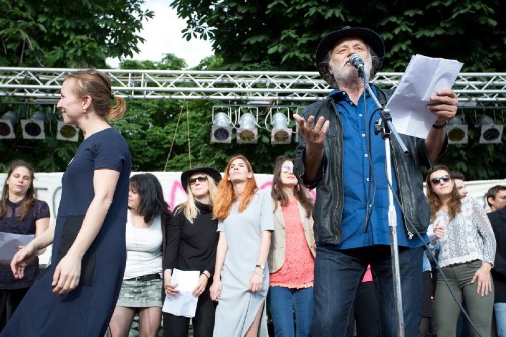 Najglasnija i najaktivnija od možda svih hrvatskih glumaca kad se najavljivao prosvjed za reformu obrazovanja bila je, naravno, Nina Violić, a njezin komentar nakon jučerašnjeg skupa od 40 tisuća ljudi bio je 'Zagreb, volim te' s legendarnom fotografijom Toma Gotovca. Na prosvjedu je bila i glazbenica Mirela Priselac Remi s prijateljicom glumicom Dorom Lipovčan.