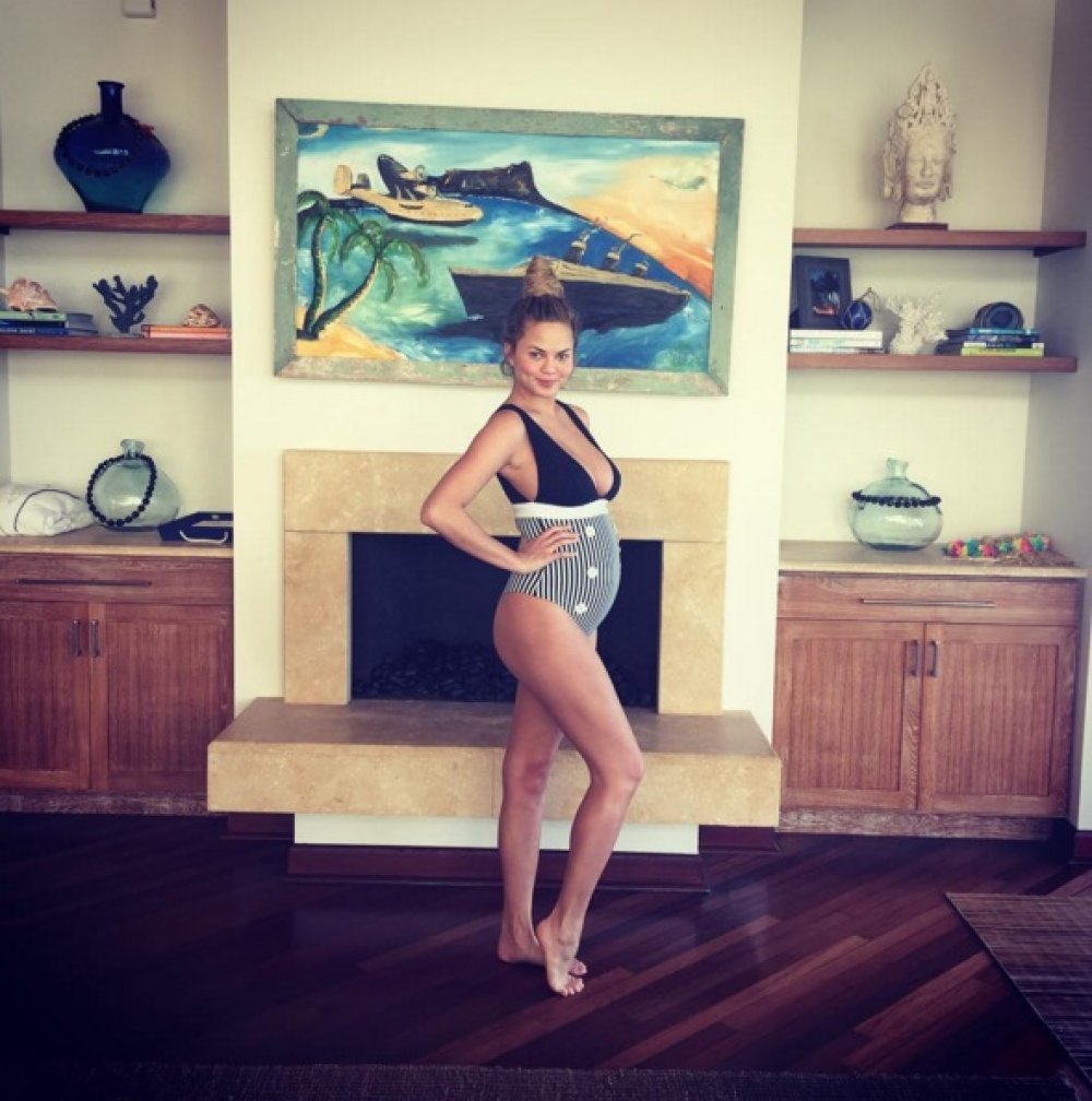Ove blagdane poznati par uživa dalje od vreve grada na nepoznatoj lokaciji, ali Chrissy unatoč sakrivanju mjesta gdje se nalaze, sa svojim fanovima dijeli sve ostale detalje. Tako se pohvalila vidljivim trudničkim trbuhom u jednodijelnom kupaćem kostimu, uz naglasak kako se ne radi o snimanju za Vogue Thailand.