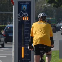 Nedaleko od sjedišta Grada Zagreba postavljen je uređaj koji mjeri koliko biciklista prolazi dnevno, koliko ih je ukupno prošlo do sada i slično. Nadam se da je to u cilju budućeg pomnog osmišljavanja biciklističkog prometa u cijelom gradu. Gledam brojke: jednoga jutra tuda je, samo jednom stranom ceste, prošlo 823 biciklista! Impresivno. Usudio bih se možda izreći nevjerojatam podatak da u Zagrebu dnevno danas možda već vozi sto tisuća biciklista