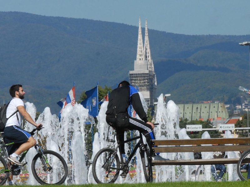 Krećem uz fontane, najelegantnije da izmaknem iz Vukovarske. Tu prolazi i dosta biciklista, većina zastane. Tko ne bi, pa ovdje je jako lijepo. Tu se mislilo na bicikliste pa su 'spojevi' na bike staze dobro riješeni. Kada sumiramo, pogledamo fotke, u Zagrebu izgleda bajno, no u jednom od narednih blogova, kada krenemo u kritičku inspekciju, tko zna čega će sve tu biti... Joj mene, možda i odustanem još od toga… Od proboja po zagrebačkim ulicama, nepoštivanja propisa, vožnje motora po bike stazama, ponašanja biciklista kada su na trotoaru... Realno, mi biciklisti smo na nogostupu gosti, a mnogi od nas se tako ne ponašaju. Neoprezni su, voze prebrzo i sl. A tu su i električni bicikli, dobro dođu onima koji idu malo dalje, no također se pojavljuje problem brzine. Europska komisija razmišlja o ograničenju max. brzine tih bicikala. Popularni su još i jer za njih nema jasno definiranih troškova registracije, a često imaju mogućnosti kao mopedi. No da zaključim tu temu i konstatiram da u Zagrebu koji 'nema' bike infrastrukturu, unatoč mnogim prekršajima koje 'moramo' napraviti, od točke A do točke B stignemo ipak brže nego automobilom ili javnim prijevozom. Zdravije je i dobro pred početak radnog dana. Ako nemate novca za registraciju automobila, kupite bicikl. Jeftino za održavanje, troškova i nema. Ako imate djecu, treba samo hrabro početi od sjedalice, pa dalje. Nedavno mi je kći - koja sada samostalno vozi mali bicikl 1,5 km do vrtića - da se odlično osjeća na biciklu. Mislim da joj čak zavide iz krcate sedamnaestice jer je ona na pomoćnim kotačima i 'juri' brže od tog tramvaja i automobila, naravno, zbog jutarnje gužve na špici.