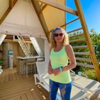 Ovaj oblik odmora odlično funkcionira i navečer jer se preko dana šator na suncu dobro zagrije. Terasa, veći stol, stolić i ležaljke, u okruženju je maslina i brojnih turista koji su ovdje sa svojim kamperima, također kućicama, ali na kotačima. Svima je super, ali nas zanima kako je njima, a oni nas pitaju kako je nama i sa zanimanjem promatraju ovaj novi trend u smještaju turista koji bi htjeli ovakav pomalo adrenalinski odmor. Zapravo, najveća vrijednost glampinga je da imaš sve u relativno malom prostoru, u kućici si, a nisi, i u tren je pretvoriš u zdanje za poželjeti. Sve je tu, od šporeta, frižidera i sudopera do spavaonica i toaleta. A kauč i visoke stolice uz dnevni stol, kada se šator potpuno otvori, postanu najveći dnevni boravak na moru u kojem smo bili.