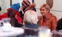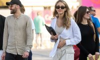 Odjevena u traperice i statusni kaput ove sezone, kako ga nazivaju, Totemov kultni model obrubljen bijelim koncem, Ivona je rukom pokušala malo zaštiti lice, dok je Sosa u svijetlim hlačama i pilotskom jaknom popravljao kosu s laganim osmijehom na licu.