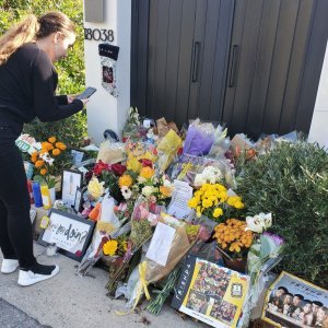 • Cvijeće i darovi ispred kuće Matthewa Perryja