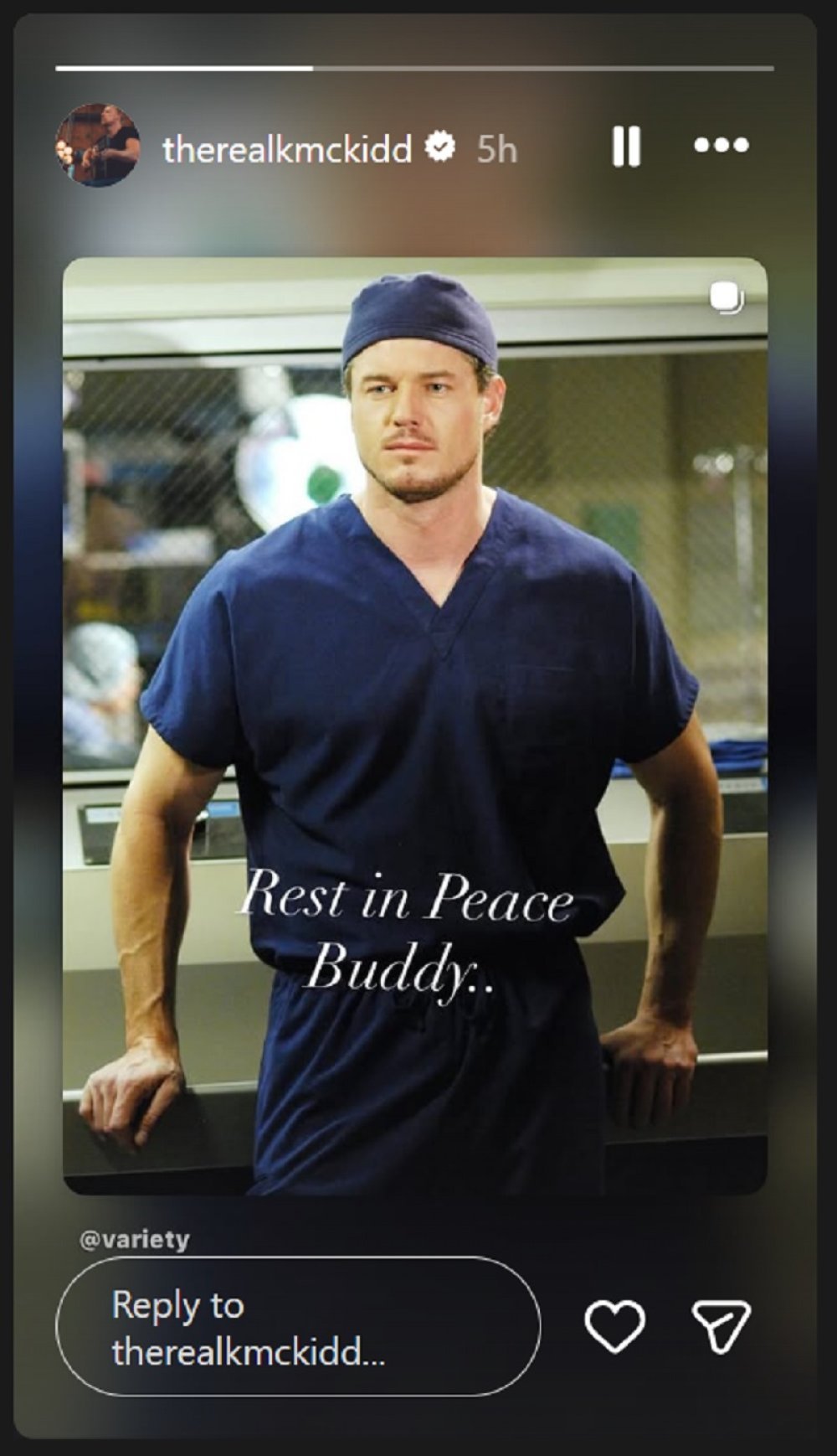 Prvi se od kolege oprostio Kevin McKidd, televizijski dr. Owen Hunt, koji je na Instagramu objavio Daneovu fotografiju u bijeloj kuti uz kratku poruku: 'Počivaj u miru, prijatelju.'