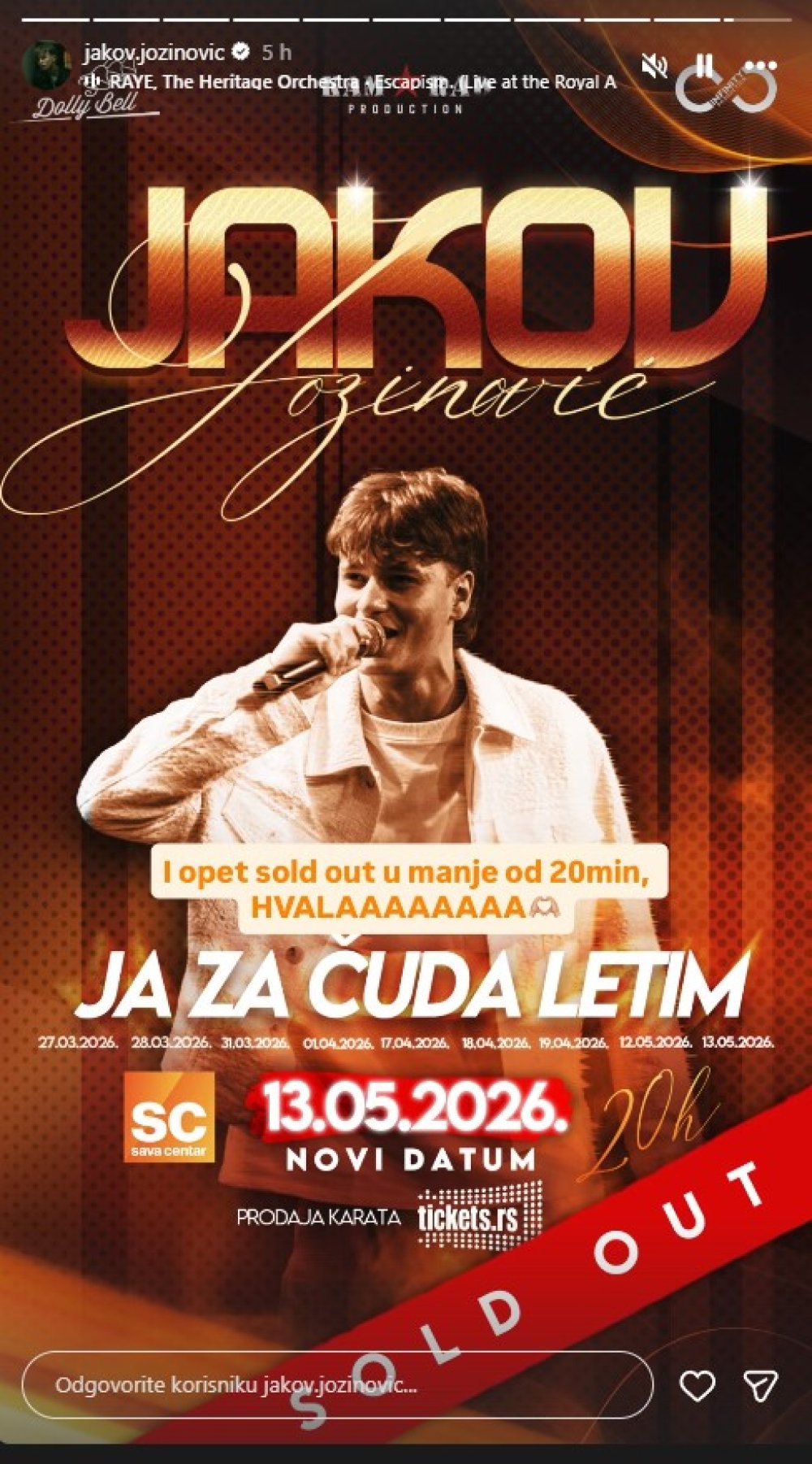 Glazbena euforija oko Jakova Jozinovića dosegnula je novi vrhunac. Mladi izvođač nastavlja nizati uspjehe u Beogradu, gdje je u rekordnom roku rasprodao i deveti koncert u Sava Centru, potvrdivši status jedne od najvećih regionalnih senzacija.