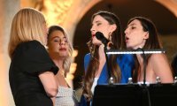 Zoe je nosila prekrasnu tamnoljubičastu svilenu haljinu s nabranim detaljima koji su činili ukras nalik na ružu, a Kidman je servirala elegantan look u sivom pripijenom odijelu s predimenzioniranim sakoom.