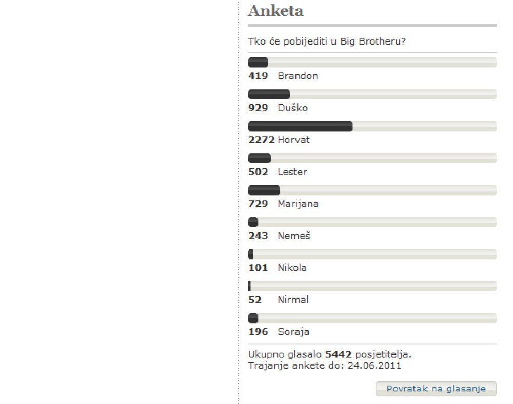 U velikoj anketi u kojoj je glasalo više od 5400 glasača, čak 2273 glasaa, odnosno preko 41 posto ukupnih glasova dobio je Horvat, koji je uvjerljivo vodio od prvog do posljednjeg anketnog dana.