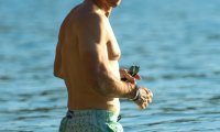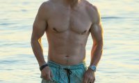Glumčeva isklesana prsa, trbušnjaci i mišićave ruke bili su u prvom planu dok se otac četvero djece šetao i sunčao u kratkim plavim kupaćim hlačicama. Vidi se da uživa u održavanju super forme. No ovog puta, svu pažnju je ukrala njegova supruga.