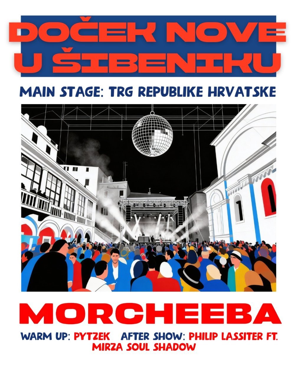 Sve počinje na Staru godinu warm upom zagrebačkog DJ Pytzeka pred koncert britanskog benda Morcheeba s kojim će Šibenčani i njihovi mnogobrojni gosti dočekati 2026. godinu na trgu pokraj katedrale sv. Jakova. Na istoj lokaciji uslijedit će nakon trip-hop legendi koncert Philipa Lassitera uz potporu Mirze Soul Shadowa, a istovremeno će se u sklopu gradskog dočeka na otvorenom odvijati u Perivoju Roberta Visianija koncert Matije Cveka i Funkensteinsa, nakon čega će nastupiti DJ duo Djobi Djoba.