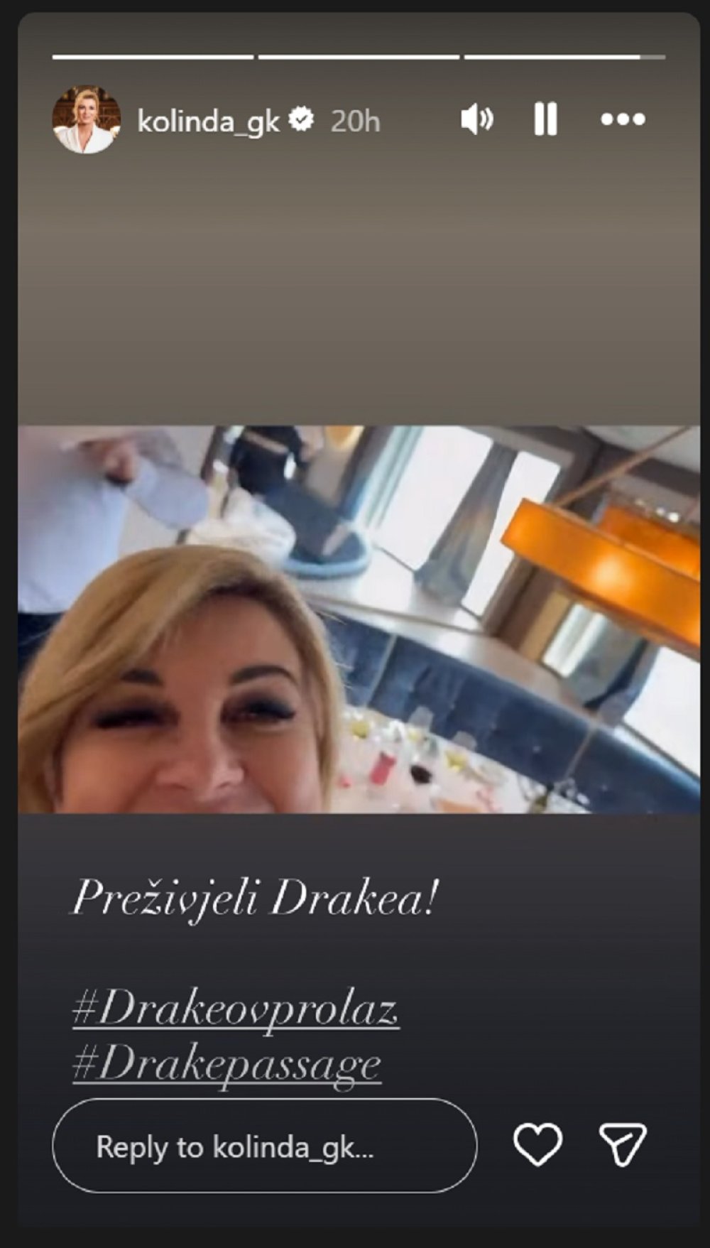 Zadnjih dana naveliko se pisalo o putovanju Kolinde Grabar-Kitarović na Antarktiku, nakon što je na društvenim mrežama podijelila niz prizora s polarne ekspedicije, uključujući i snimku 'polarnog skoka' u ledeno more. Bivša predsjednica sada se ponovno oglasila, ovoga put u slavljeničkom tonu