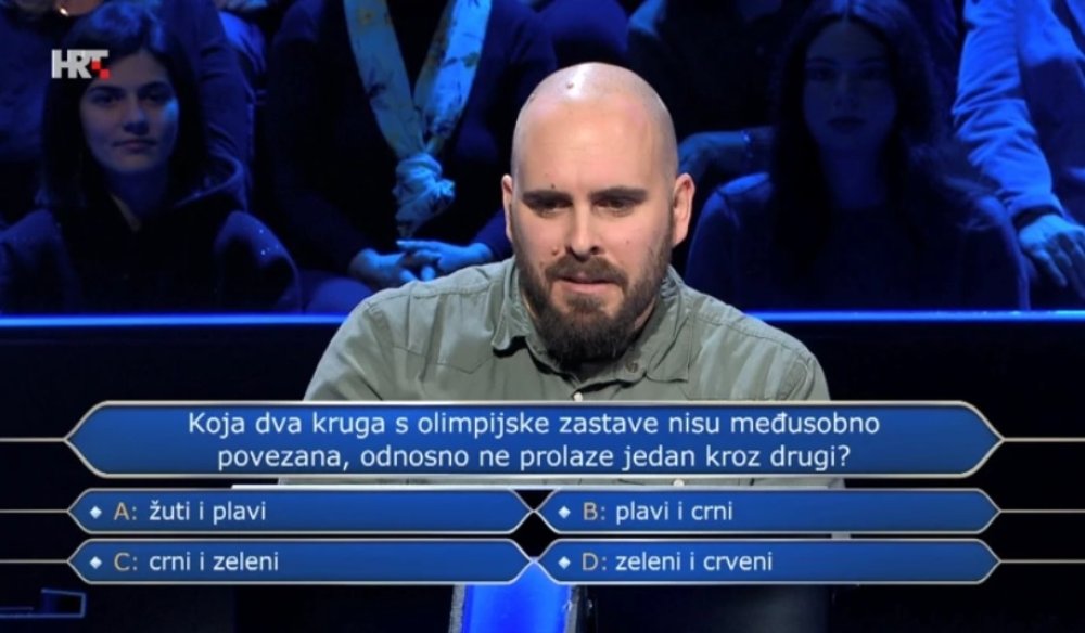 Unatoč tome, odlučio je riskirati i kao konačan odgovor odabrao kombinaciju crni i zeleni. Kako je to bilo netočno, njegova je igra tu završila te je kviz napustio s osvojenih 5.000 eura. Točan odgovor glasio je: plavi i crni.