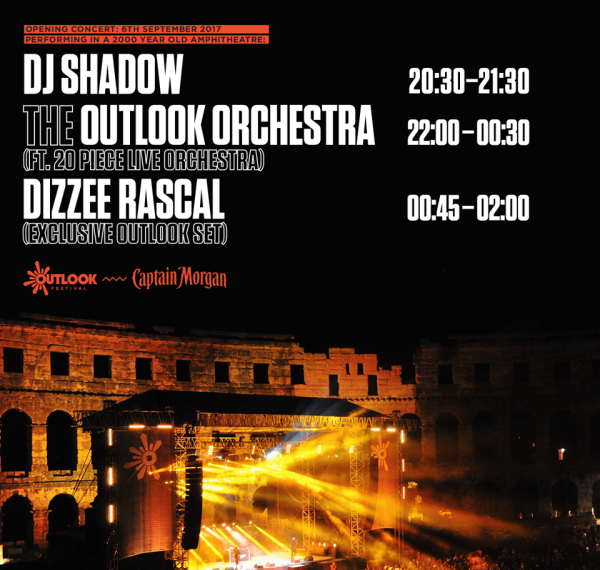 Nakon malog predaha, britanske i hrvatske organizacijske ekipe upogonit će jubilarno, deseto izdanje Outlook Festivala, jedne od najpopularnijih i nagrađivanih glazbenih manifestacija posvećenih bass glazbi i soundsystem kulturi. Proslavi desetogodišneg postojanja pridonijet će više od tristo najavljenih glazbenika, čiji će nastupi započeti u srijedu u pulskoj Areni na koncertu otvorenja kada će se na do sad najvećoj pozornici izmijeniti glazbenici sa samog vrha bass glazbe: Dizzie Rascal, pionir grimea i dobitnik Mercury nagrade, američki majstor eksperimentalnije elektronike i hip-hopa DJ Shadow te krunski nastup čak pedesetšestorice članova Outlook Orchestra od kojih je trideset i pet vokalista među kojima su mnogobrojni velikani hip hopa, grimea, reggaea, garagea, drum and bassa i dubstepa poput Horace Andya, Roots Manuve, Mad Professora, Dawn Penn, Congo Nattya, Pharoahe Moncha i mnogih drugih. Povoljnije regionalne ulaznice za Arenu u pretprodaji se mogu kupiti u Entrio sistemima i prodajnim mjestima, a blagajne kod Arene radit će u ponedjeljak i utorak od 15:00 do 21:00 te u srijedu od 15:00 do 23:30. Cijena ulaznice je 325 kn.