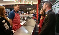 Iako se ispred crkve okupilo mnogo dobročinitelja koji su se nadali vidjeti kraljevski par, obitelj je crkvu napustila na stražnji izlaz, izbjegavši gužvu.