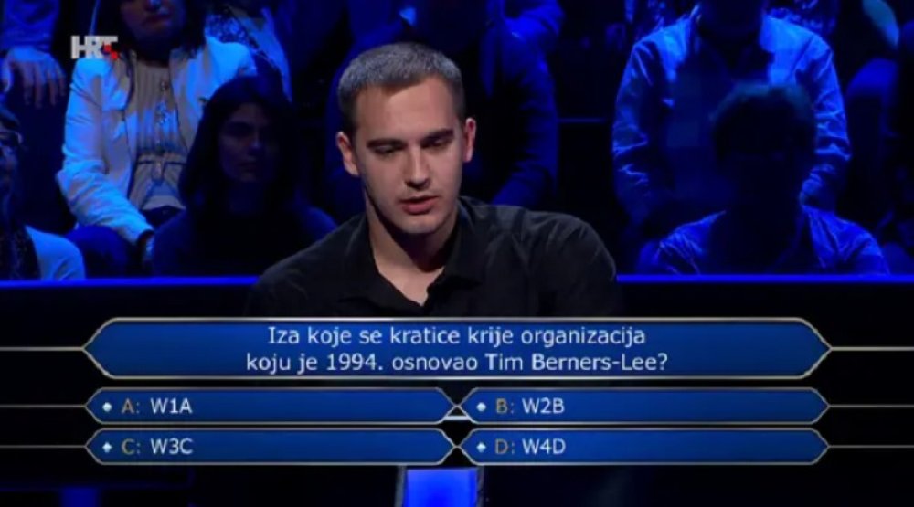 U nastavku je mladić ponudio dva točna odgovora i uspio prijeći drugi prag. Znao je odgovor na deveto pitanje o američkom predsjedniku Abrahamu Lincolnu koji je jednom uredniku novina napisao: 'Ako ropstvo nije pogrešno, onda ništa nije pogrešno'. Prijetio se i da su u zelenoj boji dvije vodoravne pruge na zlatnom trofeju za svjetske nogometne prvake, čime je osvojio minimalno 5.000 eura. Za 10.000 eura otvorio je pitanje: 'Iza koje se kratice krije organizacija koju je 1994. osnovao Tim Berners-Lee?'. Na 11. pitanju se odlučio ravnati 'pravilom' - ako ne znaš, reci B ili C. Odabrao je B, no točan odgovor bio je C - W3C čime je za mladića igra završena, sa sigurnih 5.000 eura.