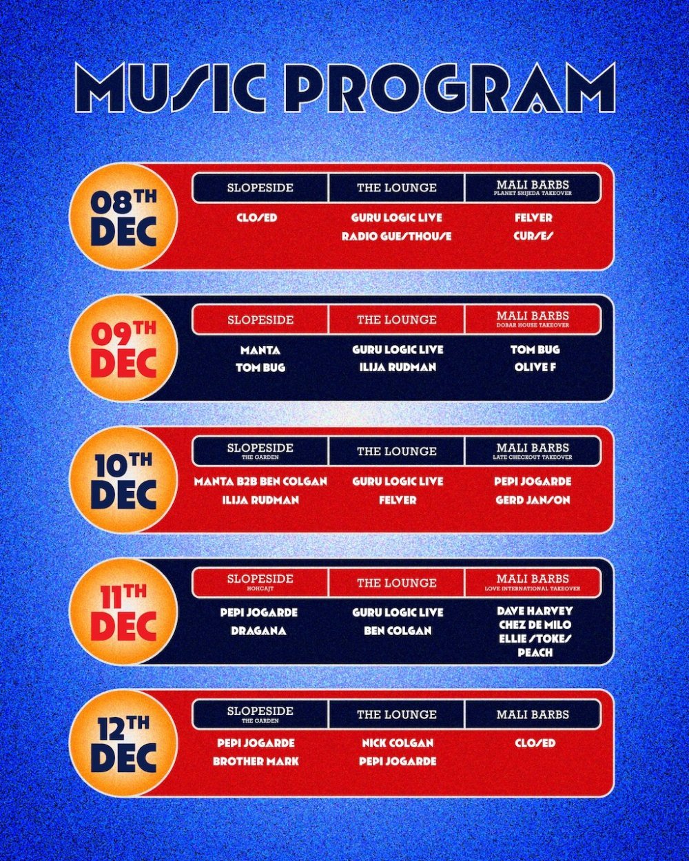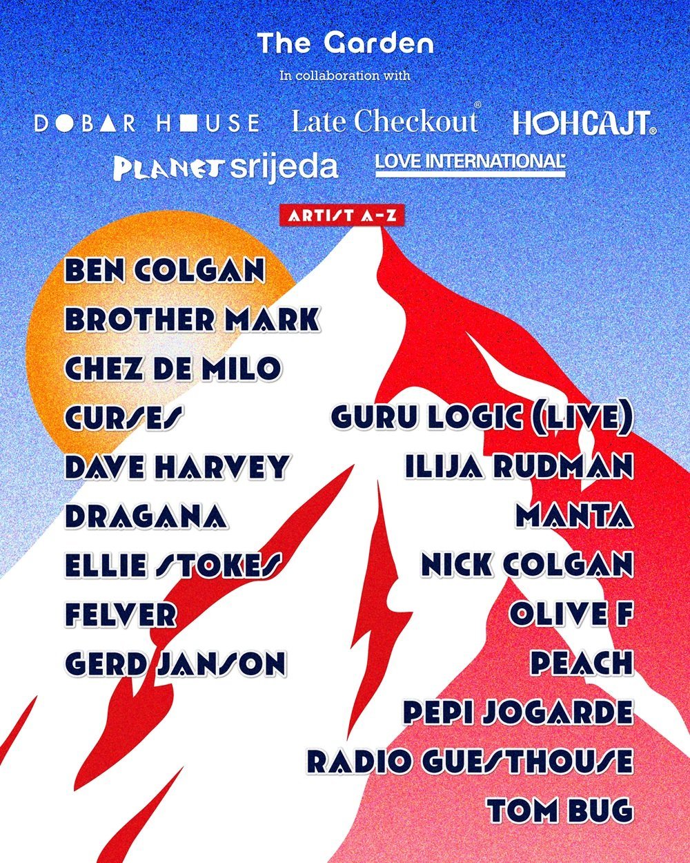 Prvo izdanje ove zimske avanture uključuje pop-up izdanje legendarne Barbarella’s klupske scene, gdje će gosti imati priliku uživati u intimnoj atmosferi, energiji i kreativnosti po kojoj je Garden poznat. Domaći kolektivi Planet Srijeda, Dobar House i Late Checkout preuzet će tri večeri festivala, dok će britanski Love International, dugogodišnji partner Garden tima, zatvoriti događaj.