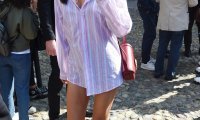 Drugi put zaredom opredijelila se za košulju/haljinu outfit, ispod koje je nosila samo donje rublje i tako u prvi plan stavila svoje duge preplanule noge. Obućom i sunčanim naočalama kao da se vratila u 90-e.