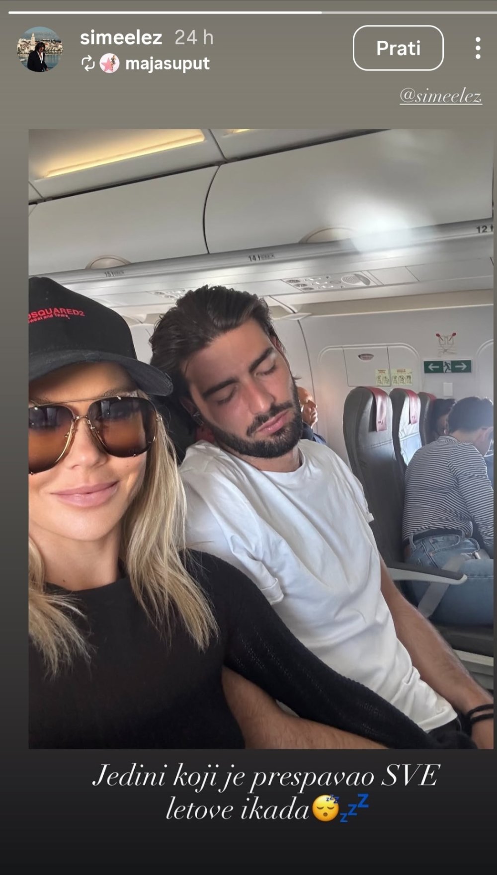 Da su već postali pravi putnički tandem, pokazuje i najnovija Majina objava iz aviona, na kojoj ona pozira nasmijana u sunčanim naočalama, dok Šime kojeg ona drži za ruku, spava na sjedalu do nje snom pravednika.