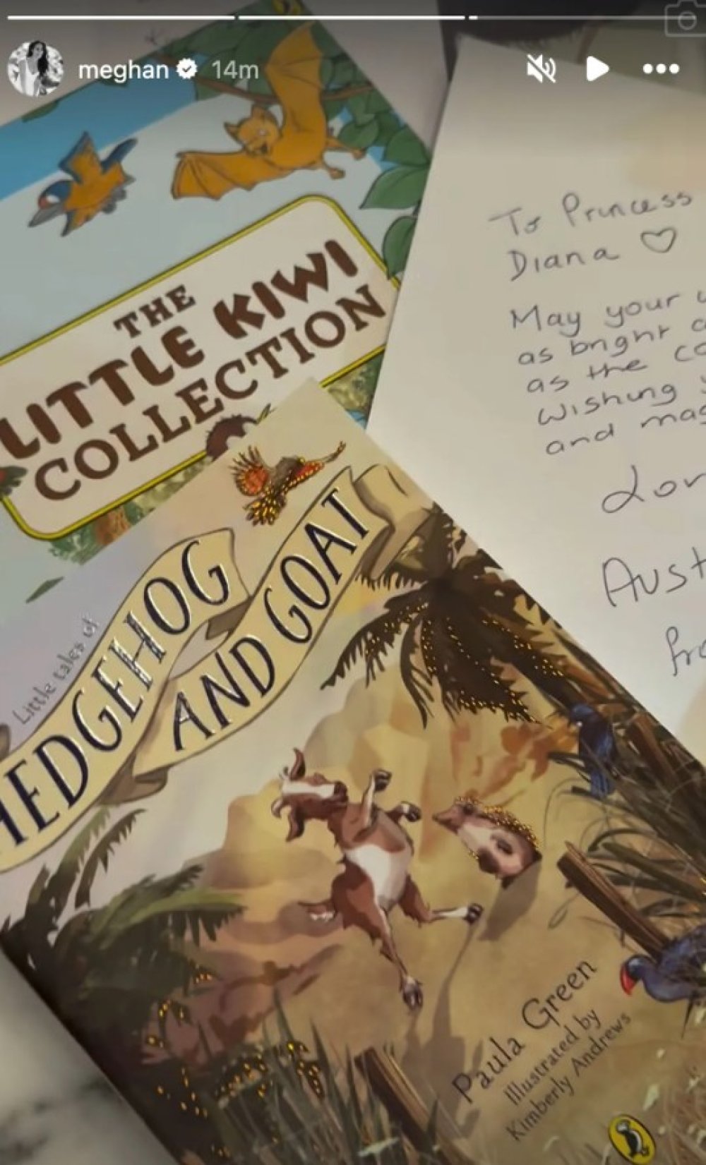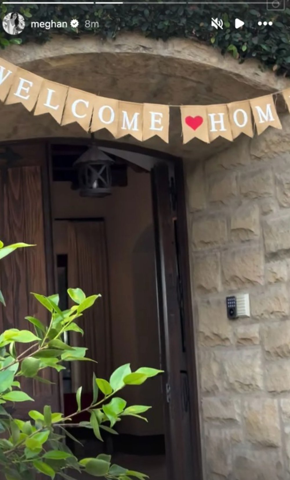Na snimci objavljenoj na Instagram Storyju vidi se natpis 'Dobrodošli kući' postavljen na ulazu u njihov dom, dok drugi kadar otkriva hrpu suvenira iz Australije. Među njima su popularni keksi Tim Tams, slikovnice, naljepnice, bojanke i rukom pisane poruke. U jednom trenutku Meghan kroz smijeh poseže za slatkišem, ‘kradući’ jedan Tim Tam dok kamerom prelazi preko darova.