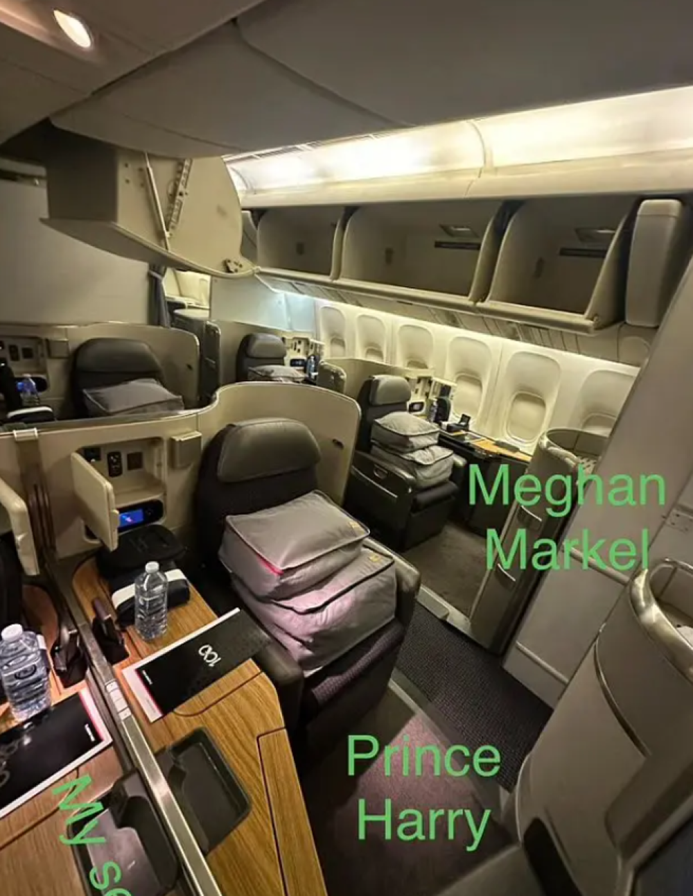 Kako je kasnije opisala, ona i suprug prvotno su trebali putovati dan ranije, no u posljednji su trenutak promijenili let i dobili nadogradnju u prvu klasu. Ondje su se našli u istom dijelu aviona u kojem su sjedili Harry i Meghan Markle, koji su se vraćali u SAD nakon posjeta Australiji.
