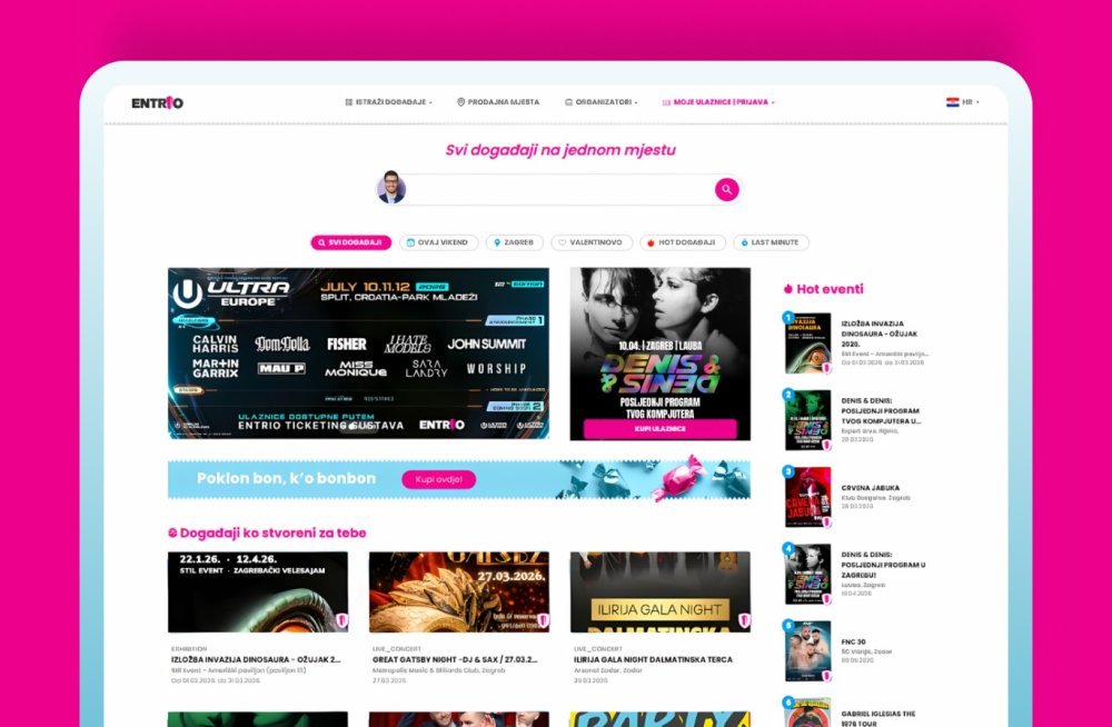 Hrvatsko tržište događaja dobiva platformu kakvu nikad nije imalo. Entrio, najveći regionalni prodavatelj ulaznica, pokreće novu generaciju svoje usluge i postaje sveobuhvatna tražilica događanja - jedinstveno mjesto na kojem korisnici mogu pronaći baš sve događaje, neovisno o tome gdje se ulaznice prodaju