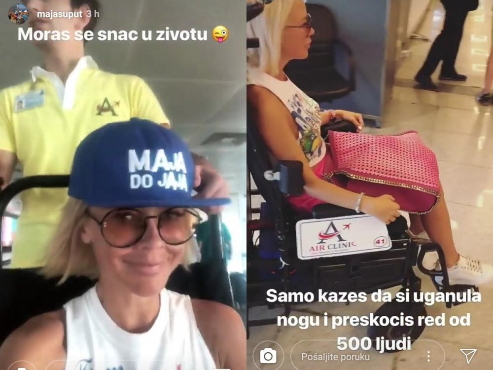 'Moraš se snać u životu. Samo kažeš da si uganula nogu i preskočiš red od 500 ljudi', stoji u Majinom komentaru fotografija na kojima ju osoblje istanbulske zračne luke Ataturk, poput kraljice, vozi u kolicima preskačući ogromne redove ljudi, rekla je tada pjevačica u urnebesnom videu koji je podijelila sa svojim obožavateljima na Instagramu.