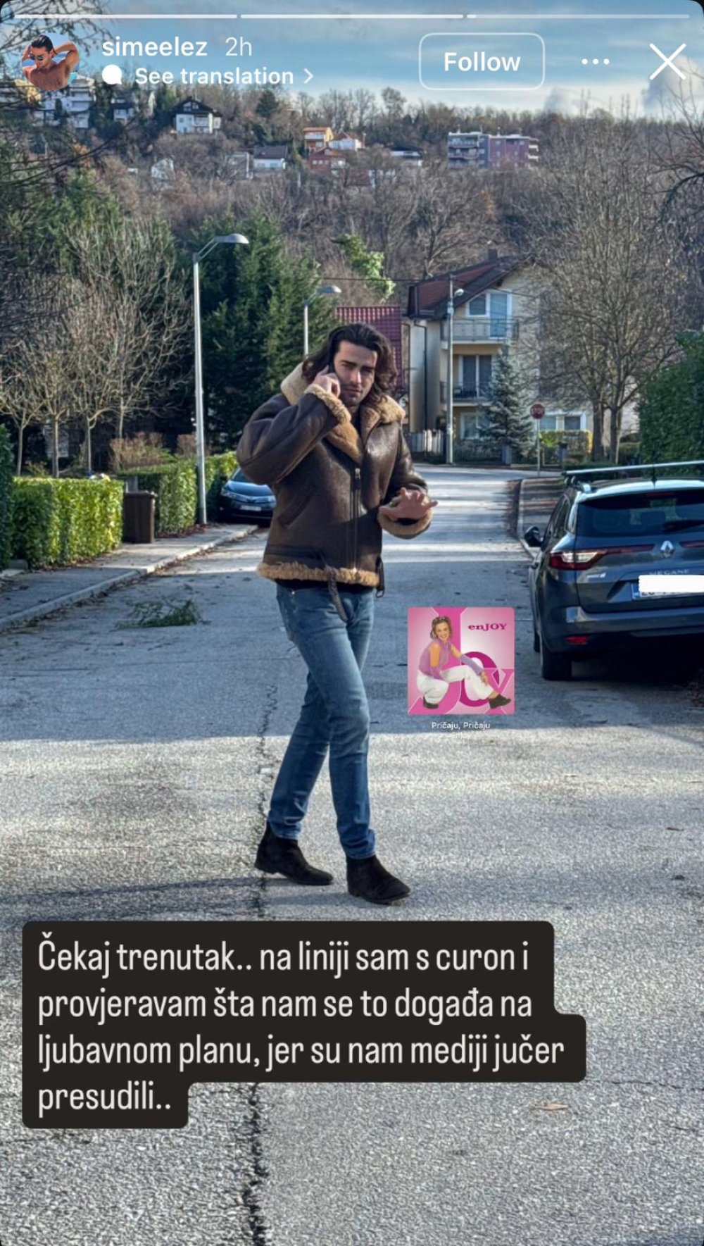 'Čekaj trenutak...na liniji sam s curom i provjeravam što nam se to događa na ljubavnom planu, jer su nam mediji jučer presudili..', napisao je Šime, što je ubrzo podijelila i Maja na svom Instagramu te u pozadinu stavila vlastitu pjesmu 'Pričaju, pričaju' iz 2000. godine.