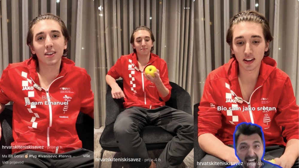 'Bok, ja sam Emanuel Ivanišević i danas ćemo vidjeti pada li jabuka daleko od stabla.' Tim riječima započinje simpatični TikTok na profilu Hrvatskog teniskog saveza, a u kojem je glavna zvijezda upravo 19-godišnji sin Gorana Ivaniševića, Emanuel, koji je krenuo stopama svog slavnog oca, proslavljenog tenisača.