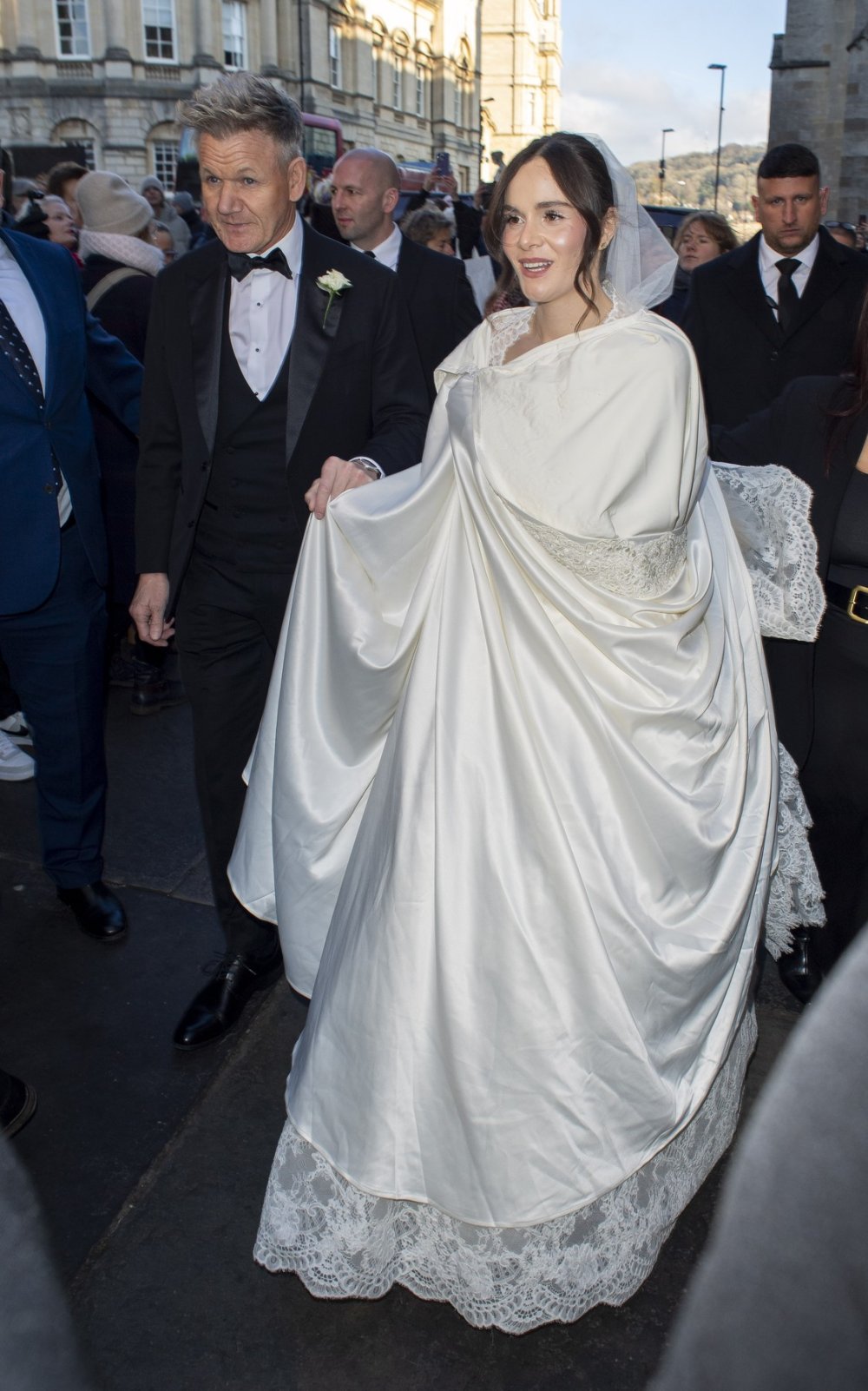 Dvadestpetogodišnja Holly, druga najstarija kći Gordona i Tane Ramsay, stigla je u crkvu praćena ocem koji je zračio ponosom, noseći elegantnu bijelu haljinu s dugim šlepom i nježnim čipkastim detaljima prekrivenu svilenim plaštem.
