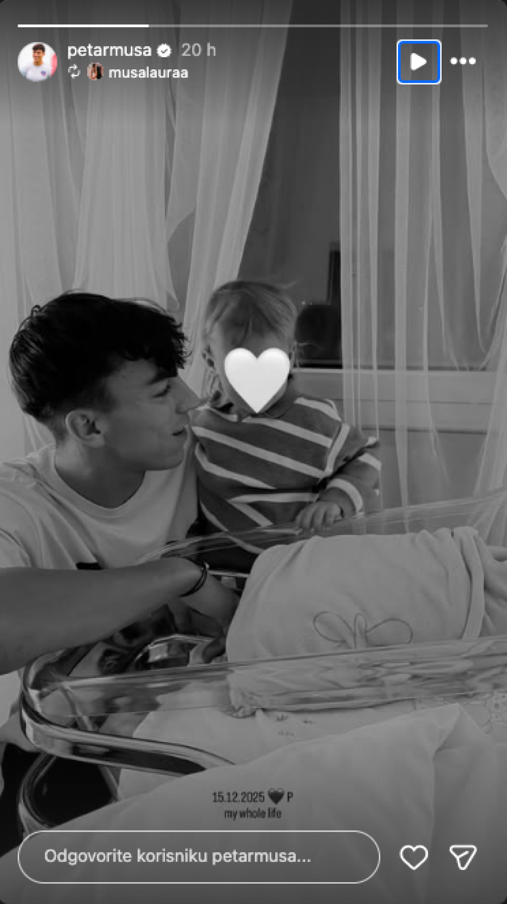 Jedna Instagram priča, na profilu 27-godišnjeg nogometaša Petra Muse, otkrila je najljepšu, dobro skrivanu tajnu. On i supruga Laura, nakon sinčića Nikkyja, dobili su djevojčicu.