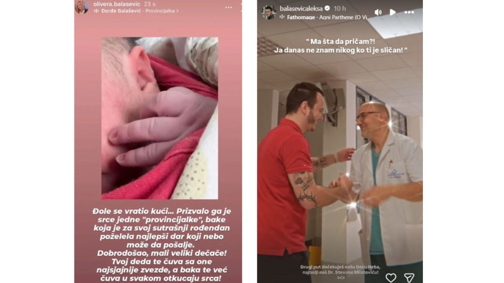 Obitelj neprežaljenog kantautora Đorđa Balaševića ovih dana ima veliki razlog za slavlje jer su njegov sin Aleksa i snaha Nikolina dobili sina kojem su dali djedovo ime. Ponosna baka Olivera Balašević podijelila je sretnu vijest s javnošću i pritom duboko ganula brojne obožavatelje