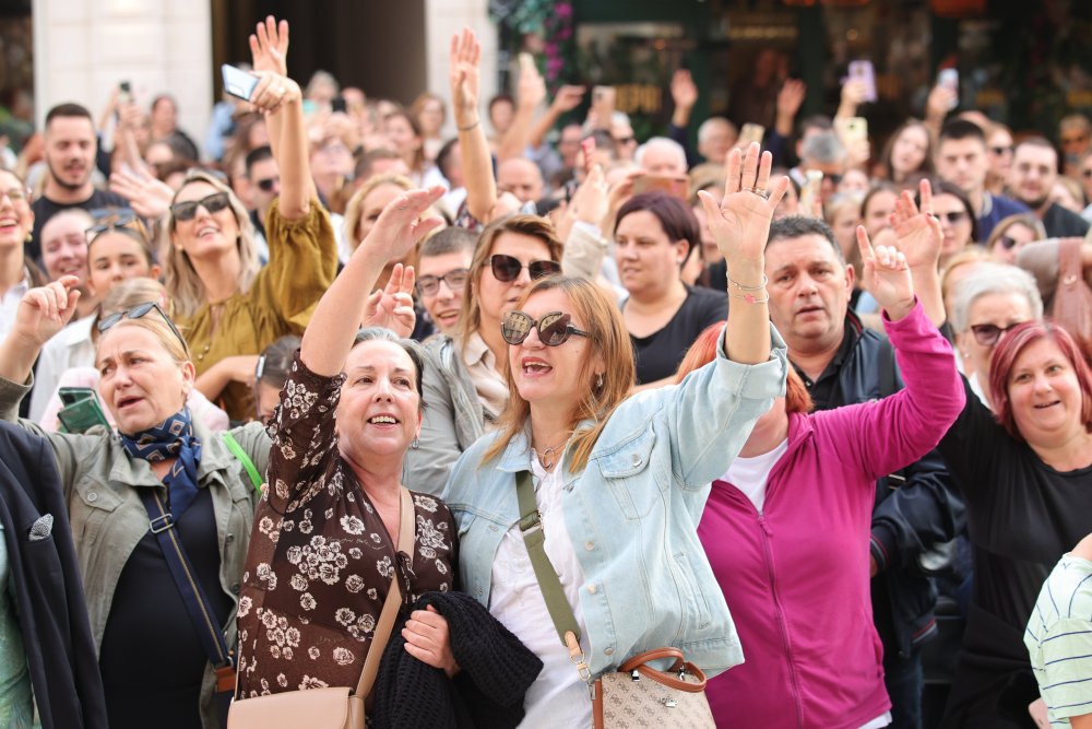 Brojni splitski obožavatelji Halida Bešlića okupili su se danas na Narodnom trgu u 17 sati kako bi pjesmo odali počast preminuloj legendi.