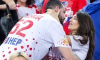 I glumica Senka Bulić snimljena je na tribinama zagrebačke Arene, gdje je sa svojim životnim partnerom Damirom Josipovićem navijala za rukometnu reprezentaciju