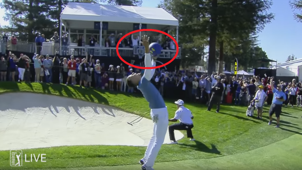 Na oduševljenje okupljenih gledatelja profesionalni igrač golfa Harold Varner III uspio je s tzv. 'greena' pogoditi dalekometni šut prije najboljeg šutera na svijetu. Stephu Curryju nije preostalo ništa drugo nego čestitati preciznom golferu...