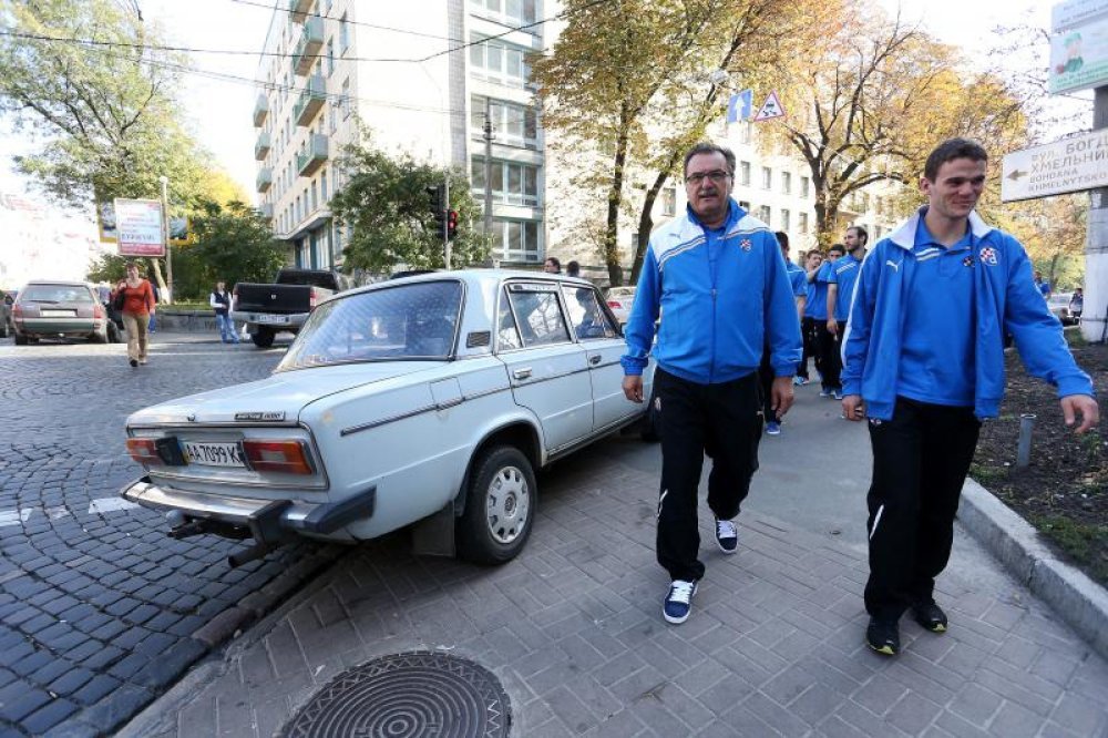 Nogometaši Dinama večeras u 20.45 sati u Kijevu igraju utakmicu drugog kola Lige prvaka protiv svog imenjaka. Uoči utakmice trener Dinama Ante Čačić s igračima je krenuo u šetnju Kijevom. Zanimljivo, igrači su tijekom šetnje susreli navijačicu zagrebačkog Dinama koja je stigla iz Moskve.