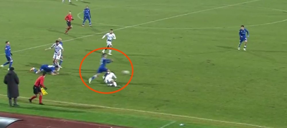 U padu je srušio lijevog beka Dinama, a sudac Erceg je dosudio prekršaj. Svi su mislili da se radi o prekršaju za Dinamo, ali je sudac iz Benkovca pokazao da je prekršaj za Goricu. Kako je to izgledalo pogledajte u videu ispod.