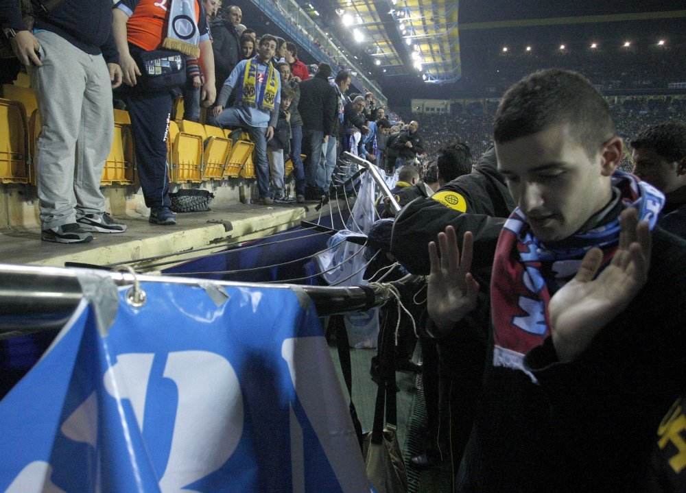 Glavnina Napolijevih navijača bila je smještena na gornjem sektoru strmog Madrigala, sreća što je ograda popustila na najnižem dijelu tribine. Na kraju euforije na talijanskim sektorima nije bilo, Villarreal je preokrenuo rezultat i sa 2:1 otišao u osminu finala.