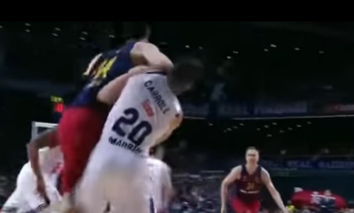 Žrtva je bio bek Reala Jaycee Carroll, 30-tak centimetara niži košarkaš osjetio je svu Tomićevu frustriranost nakon što je pobrao 'profesionalni' lakat u glavu. Tomić je imao 'sreće' da suci u tom trenutku nisu vidjeli njegov opasan nesportski potez, ali zaslužena kazna stigla ga je nakon susreta.