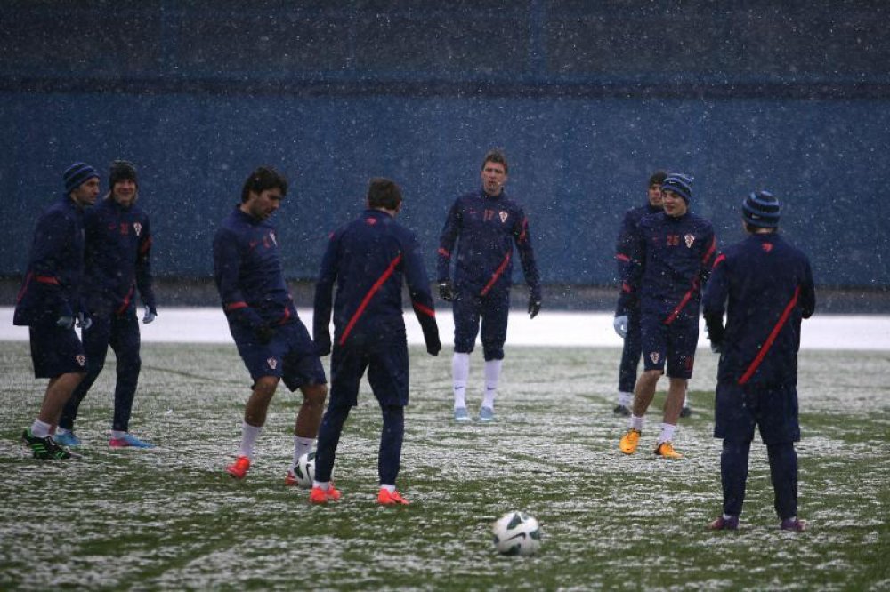 Hrvatska nogometna reprezentacija odradila je po teškim snježnim uvjetima svoj posljednji trening uoči puta u Wales