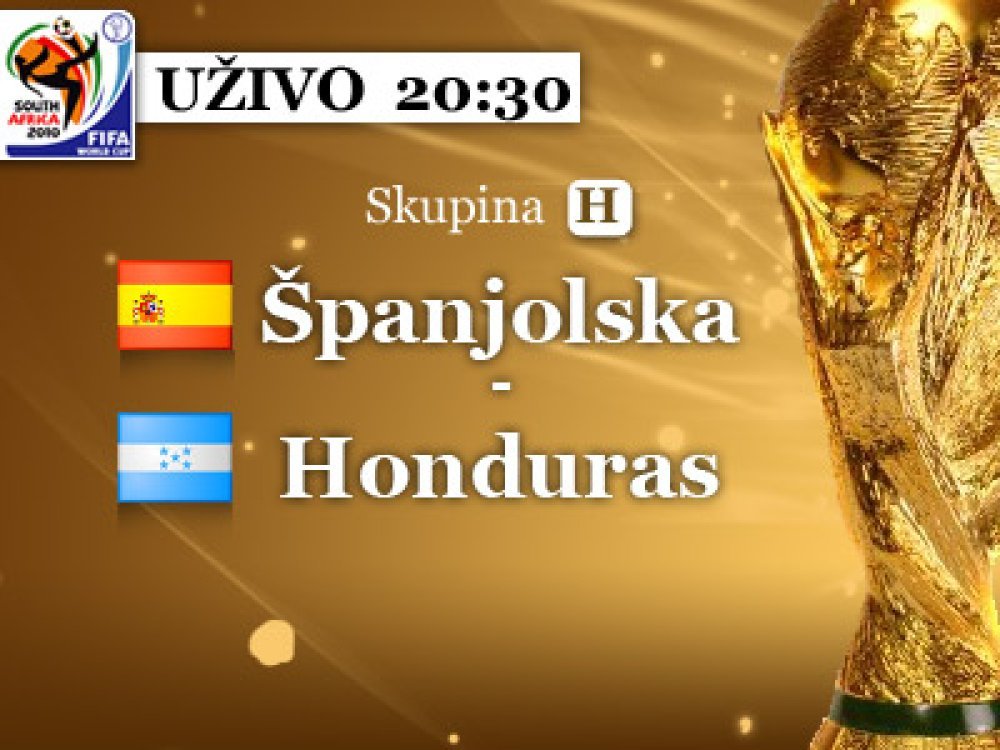U večernjem terminu u sklopu drugog kola skupine H igraju Španjolska i Honduras koji su u svojim prvim utakmicama doživjeli minimalne poraze od Švicarske i Čilea
