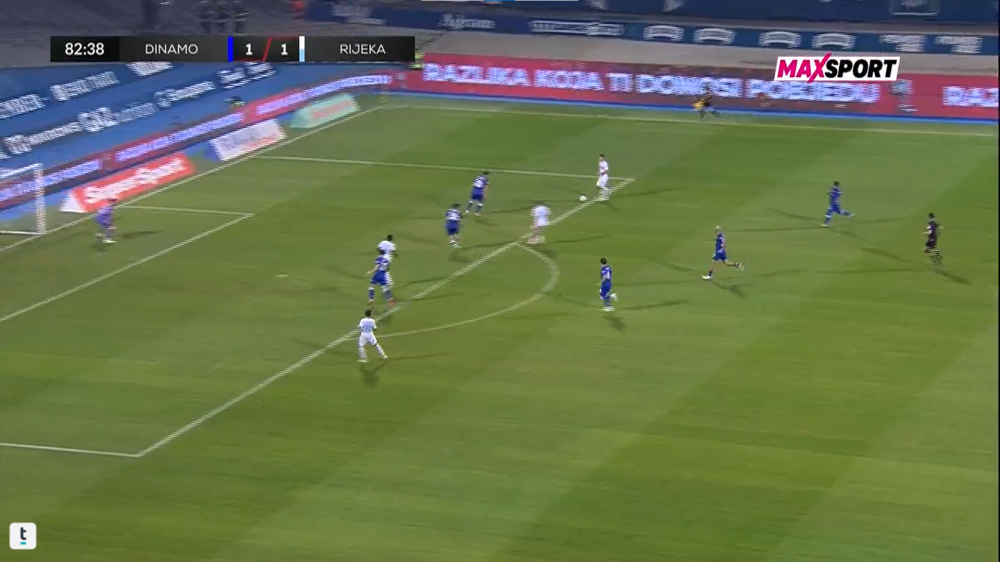 Jedna takva situacija dogodila se u 83. minuti kada je Rijeka naprosto izigrala lošu i nestabilnu Dinamovu obranu. Amer Gojak imao je hrpu prostora ispred sebe, no kada je s boka htio proigrati Adu-Adjeija, poslao je nepreciznu loptu. Situaciju možete pogledati ispod.