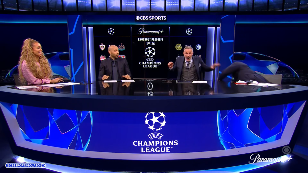 Ta utakmica igrala se u istom terminu kao i prvi susreti doigravanja za osminu finala Lige prvaka. U emisiji CBS Golazo fokus je bio na Ligi prvaka. Baš kada se ekipa koju sačinjavaju Kate Scott, Jamie Carragher, Micah Richards i Thierry Henry pripremala na nastavak programa - došla je obavijest.